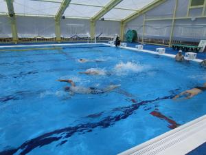 本校に隣接しているB&G海洋センターのプールを利用させていただき、今年度も水泳の授業を行うことができています。テント構造の室内プールのため、ある程度管理された室温・水温のもと安全に利用することができています。この場をお借りして感謝申し上げます。教育課程の編成上、あまり多くの時間数を水泳にかけることができないのですが、その分、実施日にじっくりと取り組めるように、今年度は2時間続きで水泳を行うようにしました。どの学年も前向きに練習に励んでいます。